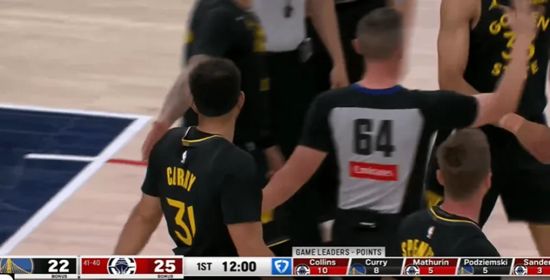 小库里底角压哨三分投进,勇士和快船首节战成25-25。
