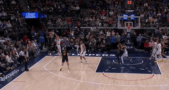 小库里底角压哨三分投进,勇士和快船首节战成25-25。